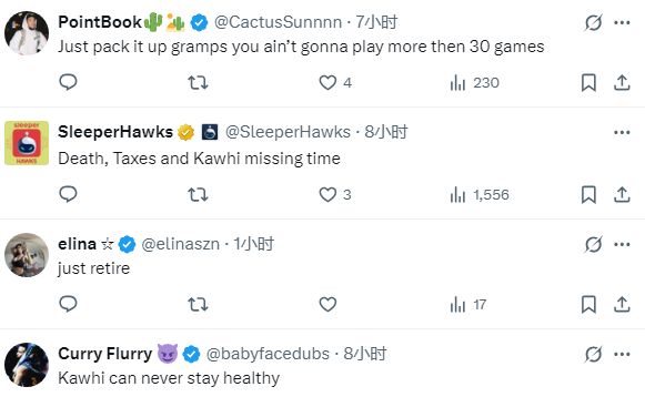 官方并未通报,暂无具体的复出时间表,快船主教练泰伦-卢表示小卡因脚踝伤势还将缺席几场比赛,球队认为这并不是什么严重的伤病。